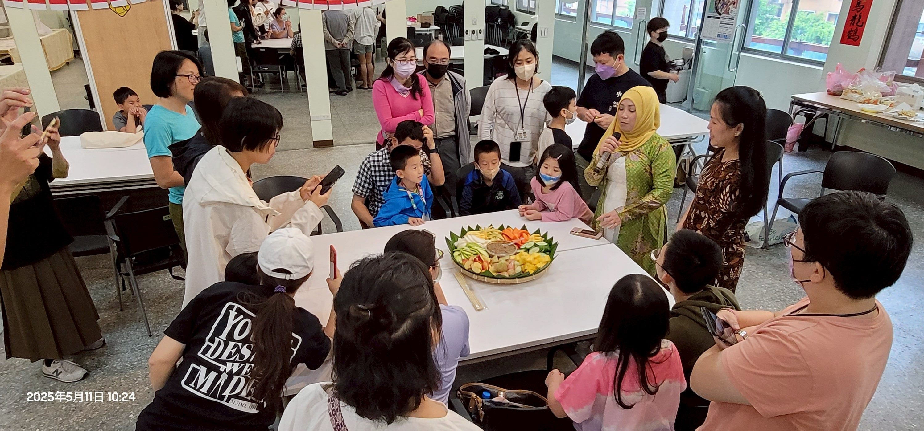 《インドネシア文化紹介|イベントレポート》 5月11日、新住民会館では、先生が大人から子どもまで幅広い参加者を招き、インドネシアのフルーツサラダ「ルジャック(Rujak)」体験を行いました。 ルジャックはインドネシアの伝統的なグルメで、新鮮な果物や野菜をスライスし、今回貴琳先生が手作りした本場の特製ソースをかけていただきます。ソースには椰子糖シロップ、ピーナッツ、エビペースト、ニンニク、生唐辛子が入っており、甘くて辛い味わいがクセになり、一口食べると止まらなくなるほど!こんな本場の味は、なかなか滅多に味わえませんよ! 美味しい食体験だけでなく、先生はインドネシアの伝統芸術「ワヤン(Wayang)」についても紹介してくれました。この芸術はユネスコの無形文化遺産にも登録されています。先生は人形遣いとなり、光とスクリーンを使った平面の影絵人形「ワヤン・クリット(Wayang Kulit)」の実演を披露し、参加者はその古くから伝わる芸術の魅力を間近で感じることができました。最後には、みんなで創造力を発揮し、自分だけの影絵人形に好きな色を塗り、オリジナルの小さなお芝居を上演しました。子どもたちは大喜びで楽しんでいました!